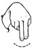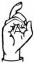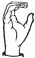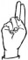 На ћирилици написано СТРАИЊА ТОРБИЦА састоји се из 14 слова [?]. Исписано ћириличном једноручном азбуком за глувонеме: